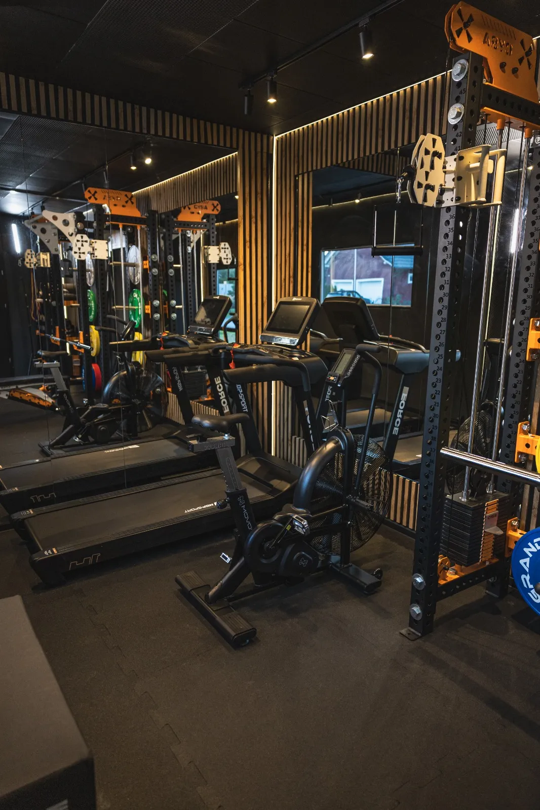 - Gotowa infrastruktura (brama, rig, cardio, wyciągi, ławki itp.).
